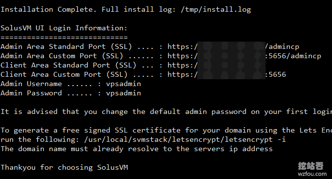 文章出自:挖站否 https://wzfou.com/solusvm-installation/,部分内容参考自senra.me、lala.im 版权所有。本站文章除注明出处外,皆为作者原创文章,可自由引用,但请注明来源。