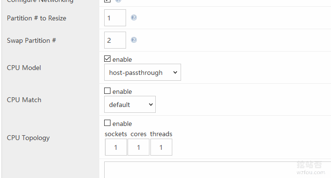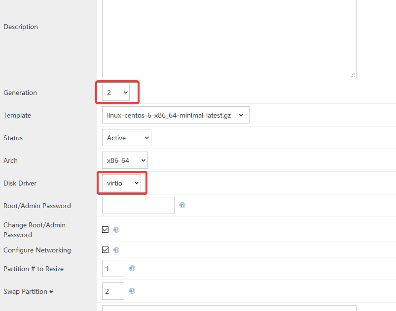 关于Generation、Disk Driver、Resize Partition、Swap Partition的设置,请根据官网的提示来设置。