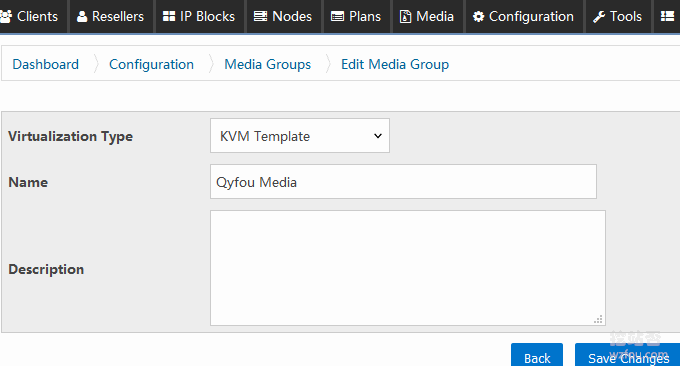 (默认情况下创建的媒体组的 Virtualization Type 是 OpenVZ,请记根据实际情况修改)