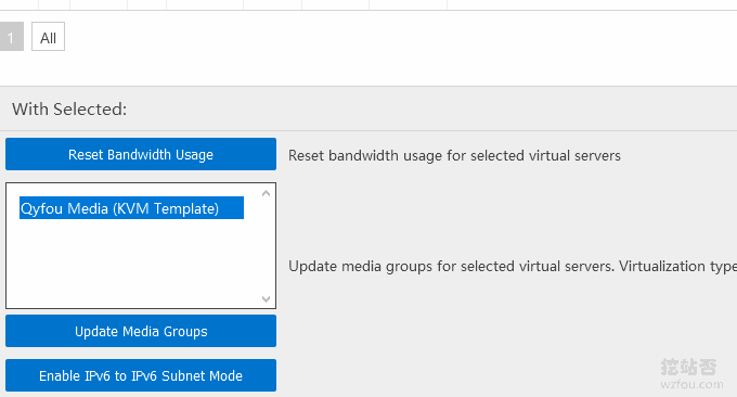 4.在 Virtual Servers > List Virtual Servers 里选中所有虚拟机,然后在下面的 With Selected 里选中刚才创建的媒体组,点击 Update media groups 更新媒体组;